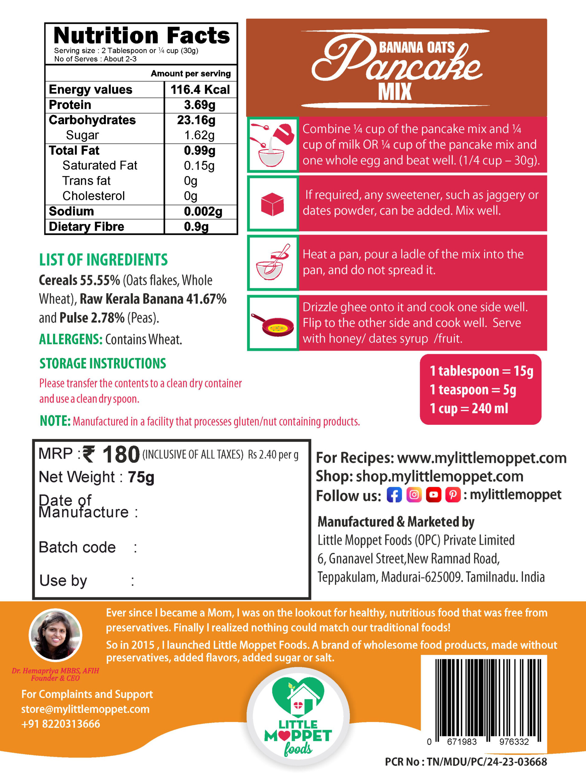 Ingredients: Oats, Raw Kerala Banana Powder and Wheat