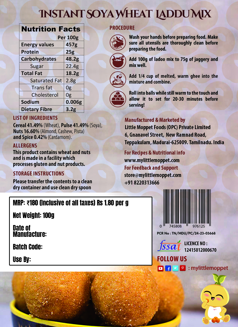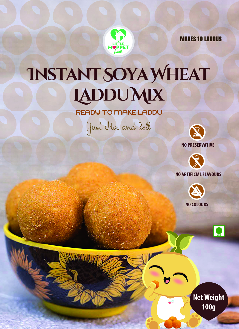 The Little Moppet Foods Instant Soya Wheat Laddoo Mix is the ideal healthy treat for the whole family.